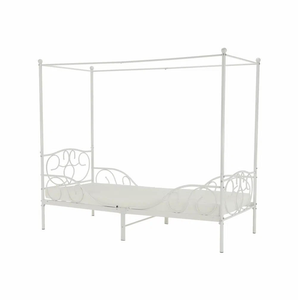 Kovová posteľ s nebesami, biela, 90×200, ADELISA