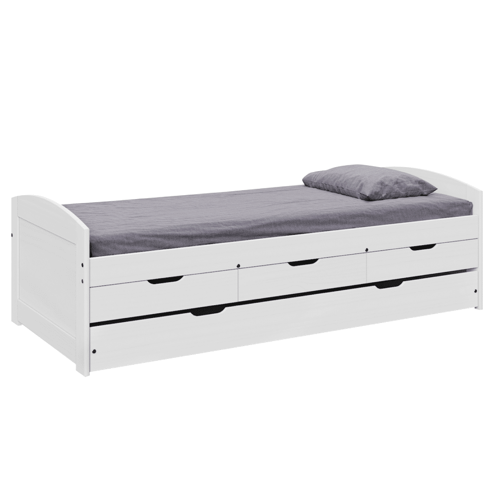 Posteľ s výsuvnou prístelkou, biela, masív, 90×200, MARINELLA NEW