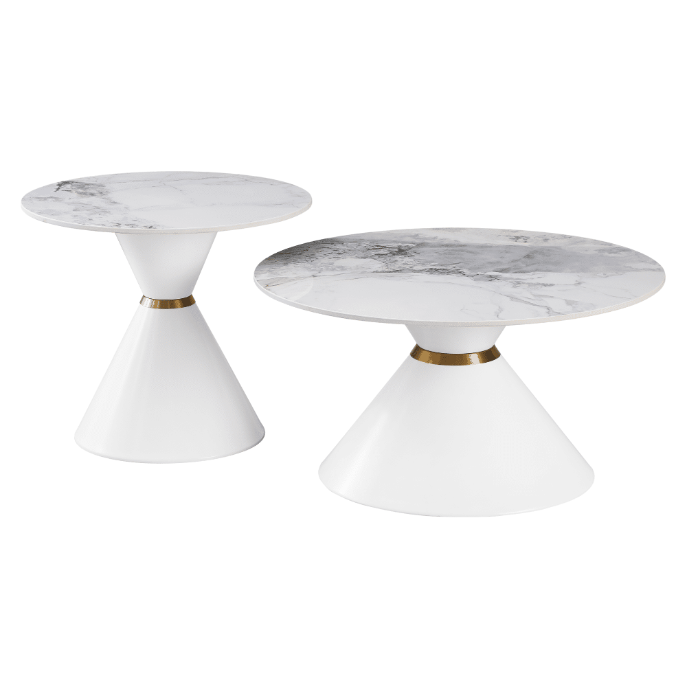 Konferenčné stolíky, set 2 ks, biely mramor/biela/zlatá, oceľ, MABUZ