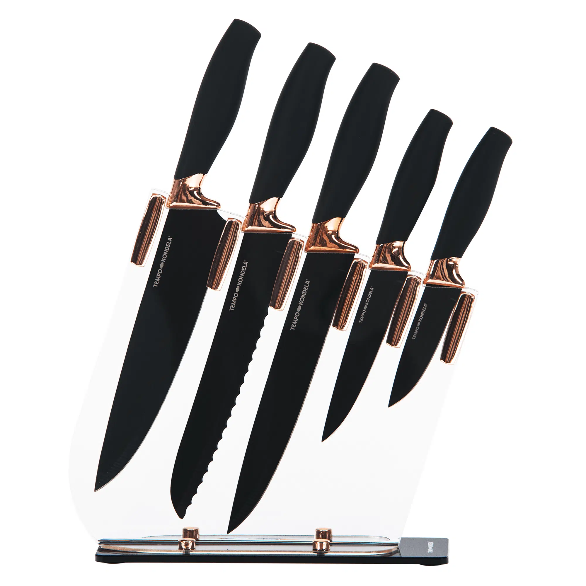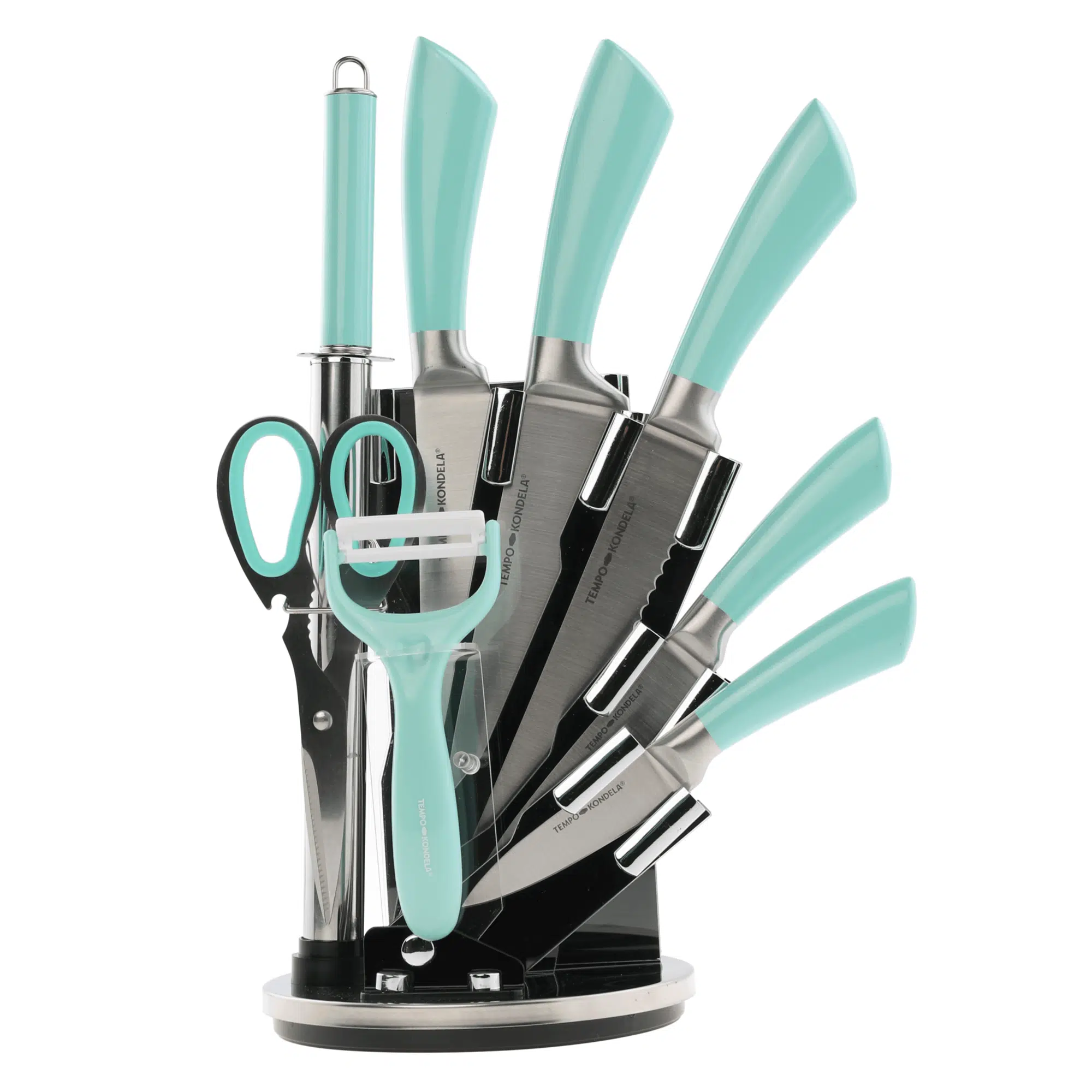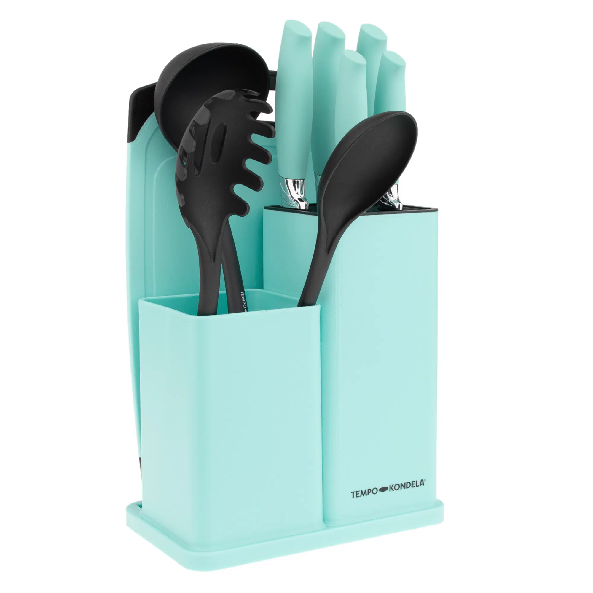 TEMPO-KONDELA KAHON, sada nožov a kuchynského náradia, 10 ks, v stojane, biela