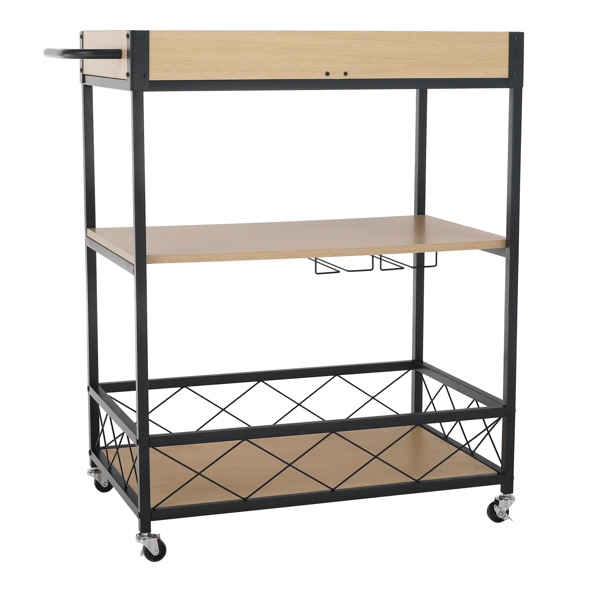 Servírovací vozík, čierna/dub svetlý, VINITA