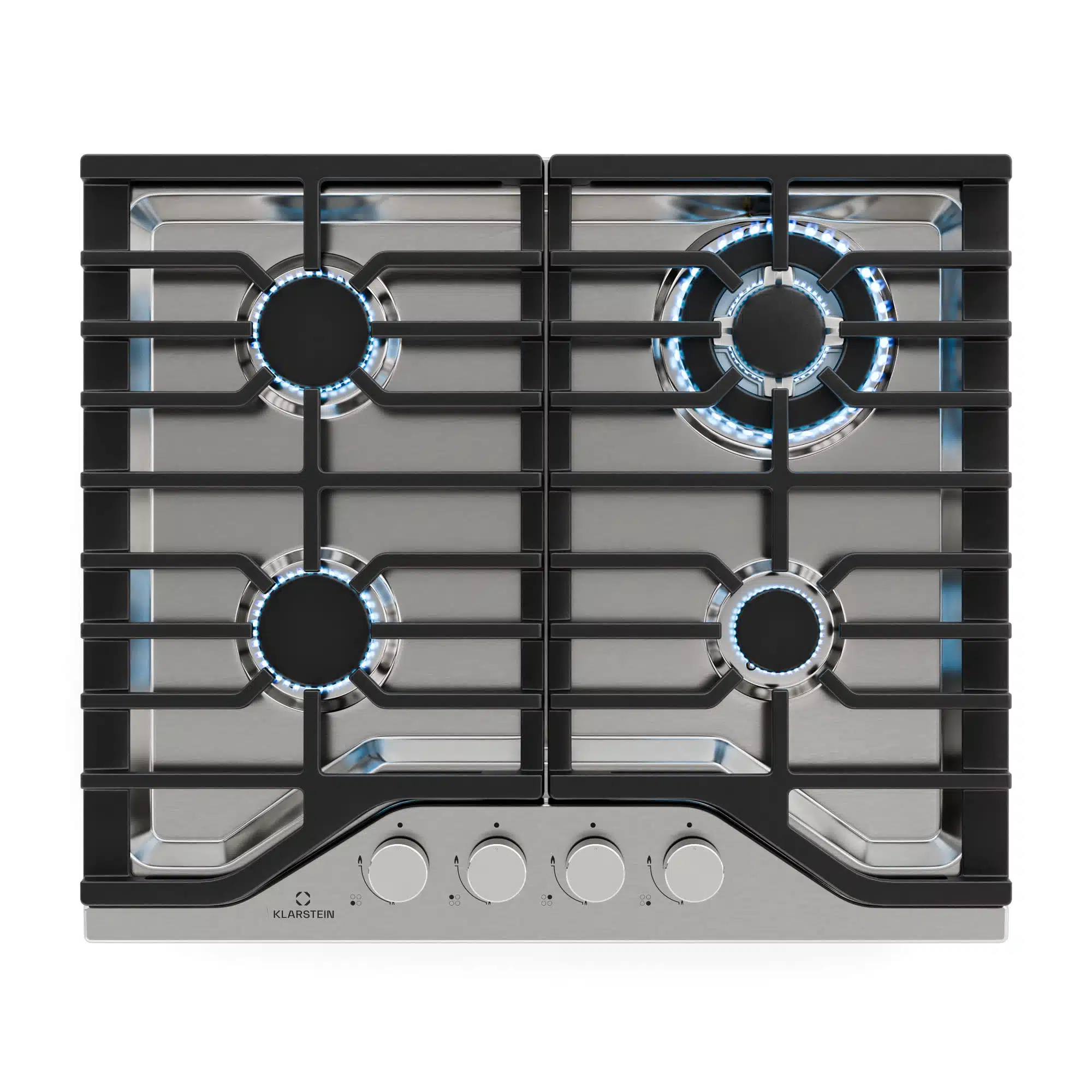 Klarstein Turbocast plynová varná doska, 304 nehrdzavejúca oceľ, 4 horáky, profesionálny liatinový držiak, horák wok