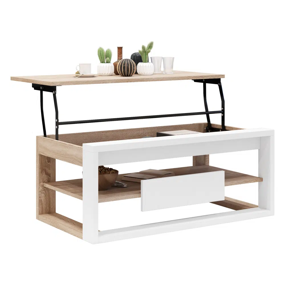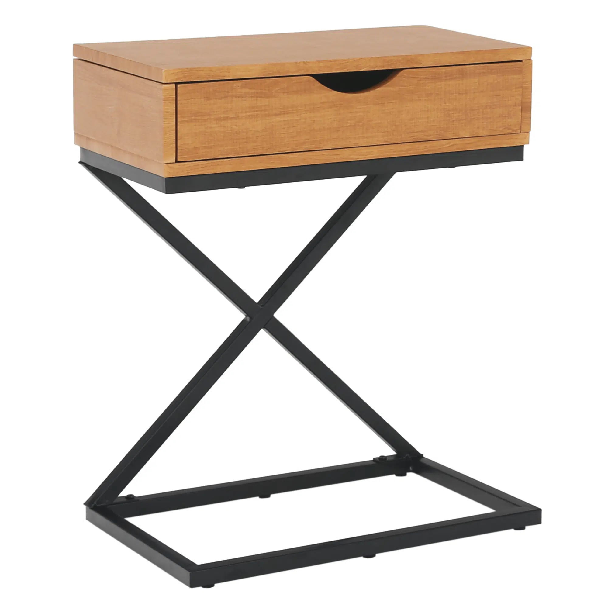 Príručný/nočný stolík, biela/prírodná, HAGAN