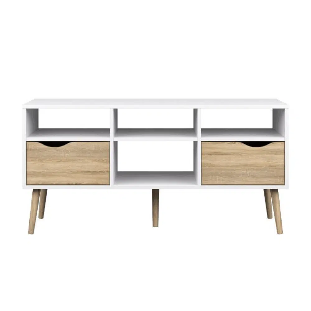RTV stolík 187, biela/dub grandson/biely lesk, CITY