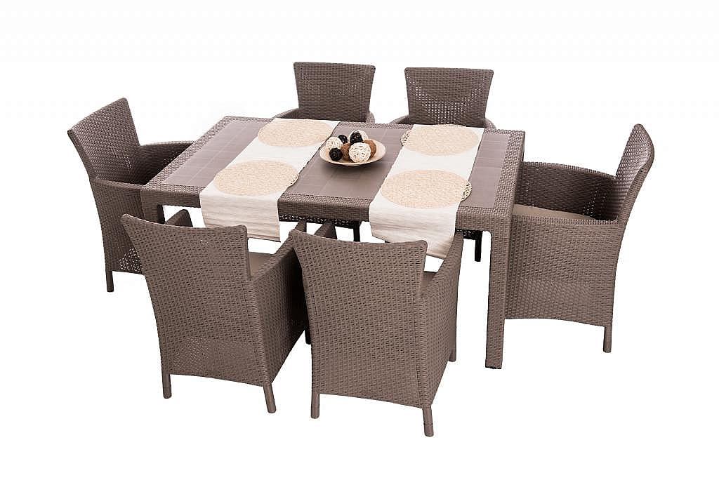 DEOKORK Záhradná ratanová zostava MODENA II. 1+6 (hnedá)