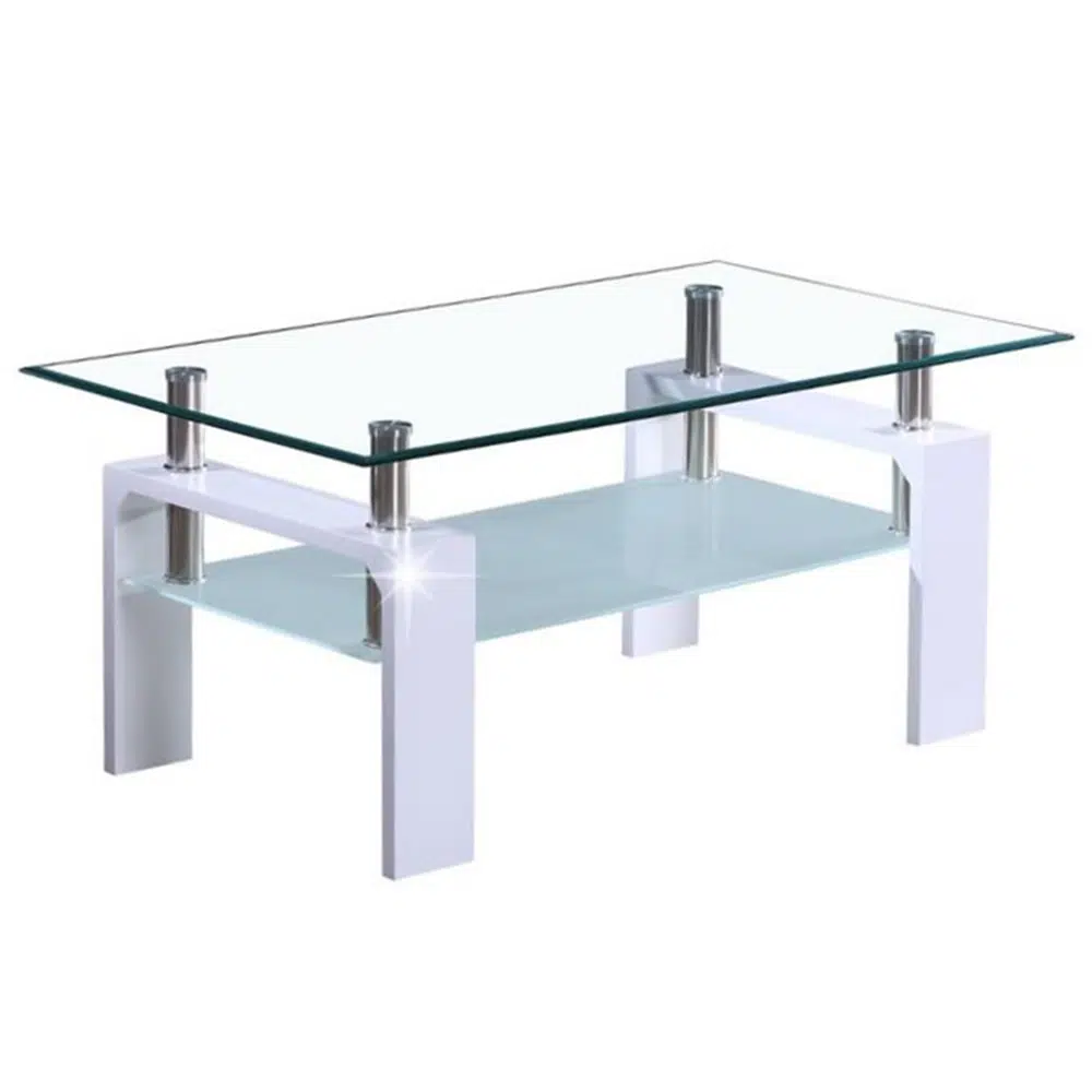 Konferenčný stolík, biela extra vysoký lesk HG/sklo, LIBOR 2 NEW