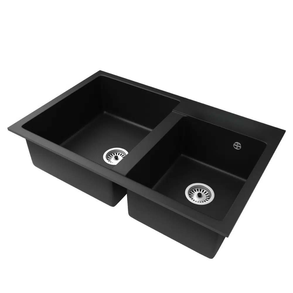 Granitový drez so sifónom, čierna, 80×50, TORI