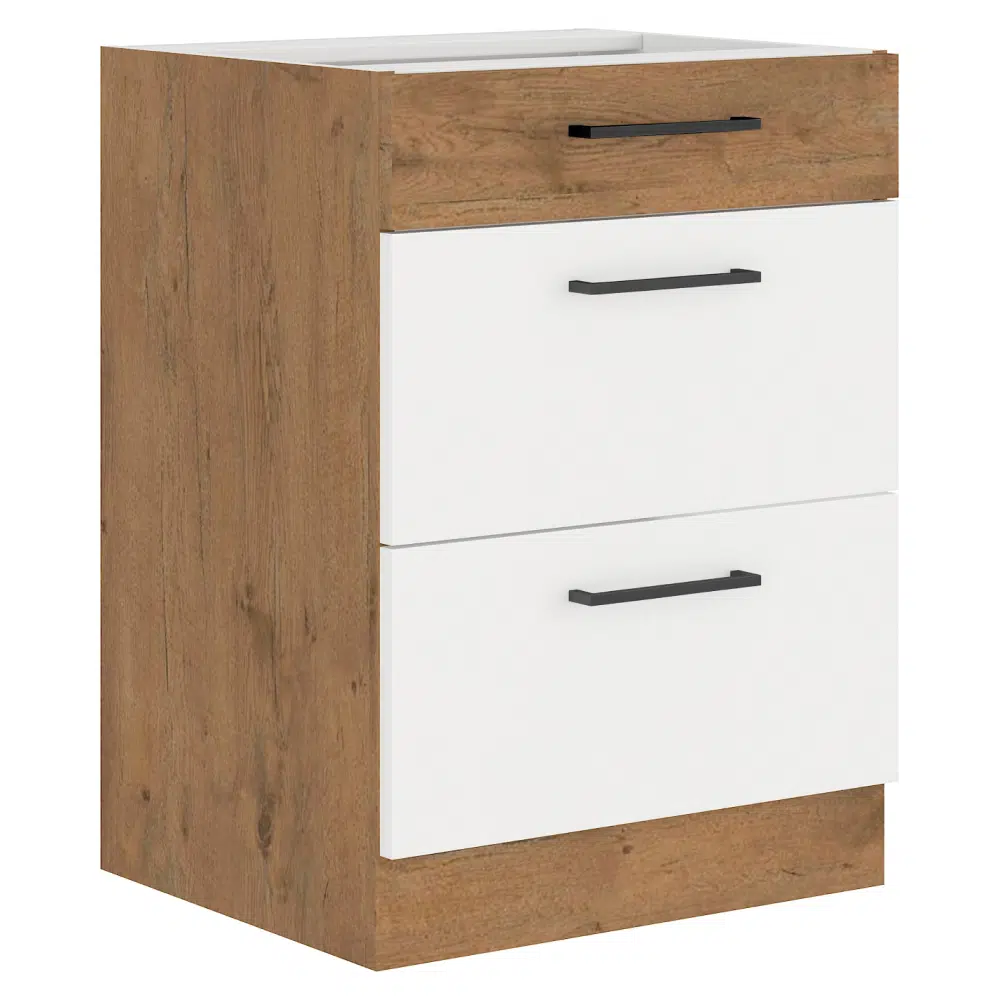 Spodná skrinka, biela extra vysoký lesk HG/dub lancelot, VEGA D60 3S BB
