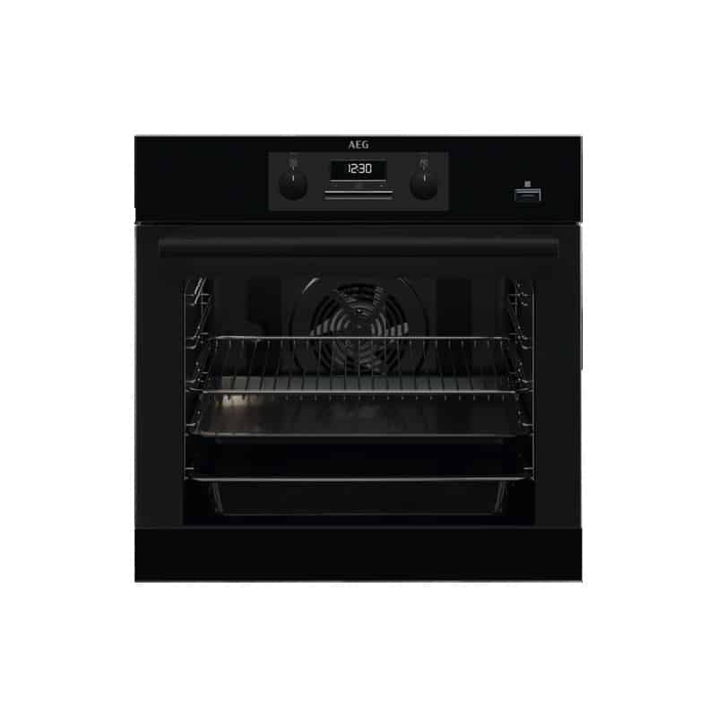 Rúra vstavaná s parnou funkciou; AEG Mastery SteamBake BEB351111M; Šírka (cm): 60; En. trieda: A; Technológia: SteamBake; Samočištěnie: AquaCleaning; Vnútorný objem (l): 71; Ovládanie: Zasunovací ovladače; Teleskopické výsuvy: Áno; Teplotná sonda: Nie; SoftClosing: Nie; Farba: Čierná; Počet skel: 3; Rozmer VxŠxH (mm): 594x595x567