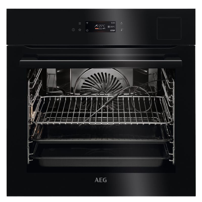 Rúra vstávaná s parnou funkciou; AEG Mastery SteamPro BSE798380B; Šírka (cm): 60; En.trieda: A++; Technológia: SteamPro / WiFi / Bluetooth / Steamify; Samočištenie: Parní; Vnútorný objem (l): 70; Ovládanie: Elektronické Dotykové ; Teleskopické výsuvy: Áno; Teplotná sonda: Áno; SoftClosing: Áno; Farba: Nerez s povrchovou úpravou proti odtlačkom prstov; Počet skel: 4; Rozmer VxŠxH (mm): 594x595x567