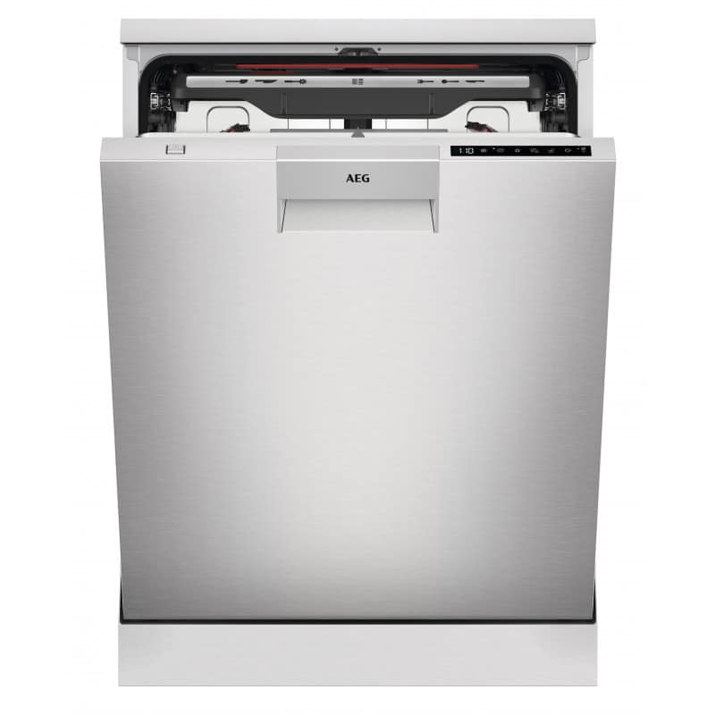 FS – Umývačka riadu 60 cm; AEG Mastery FFB73716PM; Šírka (cm): 60; Technológia: airdry; En. trieda: D; Počet sád: 15; Počet programov / teplôt: 8/5; Spotreba vody (l): 11; Hlučnosť (dB): 45; Satelitné rameno: Áno; Príborová zásuvka: Áno; SoftGrips: 12; Vnútorné osvetlenie: Áno; Rozmery VxŠxH (mm): 850x596x610; Motor: Invertor motor so zárukou 10 rokov; Farba: Nerez