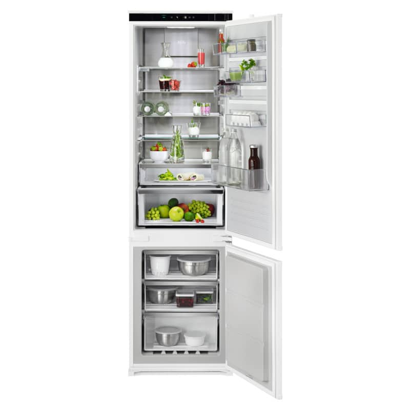 Chladnička kombinovaná s mrazničkou dole NF; AEG 8000 Cooling 360 TSC8M191CS; Výška (cm): 1884; Technológia: No Frost Convertible; En.trieda: C; Čistý objem chladničky/mrazničky (l): 207/62; Ovládanie: Elektronické, dotykové; Displej: Áno; Hlučnosť (dB): 35; Ventilátor: MultiFlow; Nízkoteplotná zásuvka: ExtraChill; Custom Flex: Áno; Farba: biela; FlexiShelf: Áno; SoftClosing: Nie; Rozmer VxŠxH (mm): 1884x546x549; Motor: Invertorový so zárukou 10 rokov; 5 rokov záruka na celý model: Áno