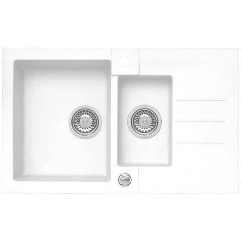 white 11, Rozmery : 780 x 480 x 180 mm Vanička : 320 x 400 x 180 mm 180 x 300 x 120 mm Hĺbka vaničky : 180 mm Spodná skrinka : od 600 mm Výrez : podľa šablóny V cene drezu : – otočný sitkový excentrický 3 1/2″ ventil s prepadom – sitkový 31/2″ ventil – úchytky – sifón s odbočkou na umývačku riadu
