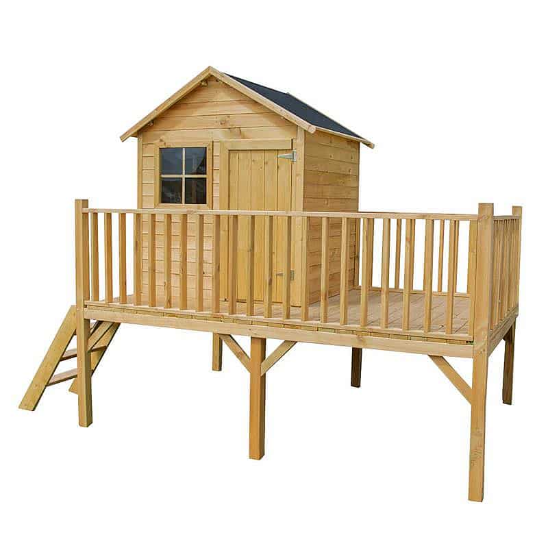 Kombináciou fantázií detí a rodičov si vytvoríte vlastné vysnívané ihrisko na vlastnej záhrade. Každé dieťa si praje mať svoj vlastný domček na hranie. Zaobstarajte mu na Vašu záhradu tento úžasný domček, kde sa bude môcť hrať s kamarátmi. S touto hračkou sa Vaše dieťa nikdy nebude nudiť. Domček má modulárnu konštrukciu a väčšinu prvkov, ako steny, strecha, dvere, okná, podlahy, zábradlia sú rýchlo zostavené a pripravené na maľovanie. Inštalácia domčeka je vďaka pripraveným dielom jednoduchá a rýchla. Po dokončení montáže môžete domček ľubovoľne dotvárať a maľovať, zdobiť ho rozprávkovými vzormi alebo obľúbenou farbou vášho dieťaťa. Možnosť prispôsobiť vzhľad stavby individuálnym fantáziám a preferenciám dieťaťa je zárukou vytvorenia miesta na hranie priamo z jej snov.