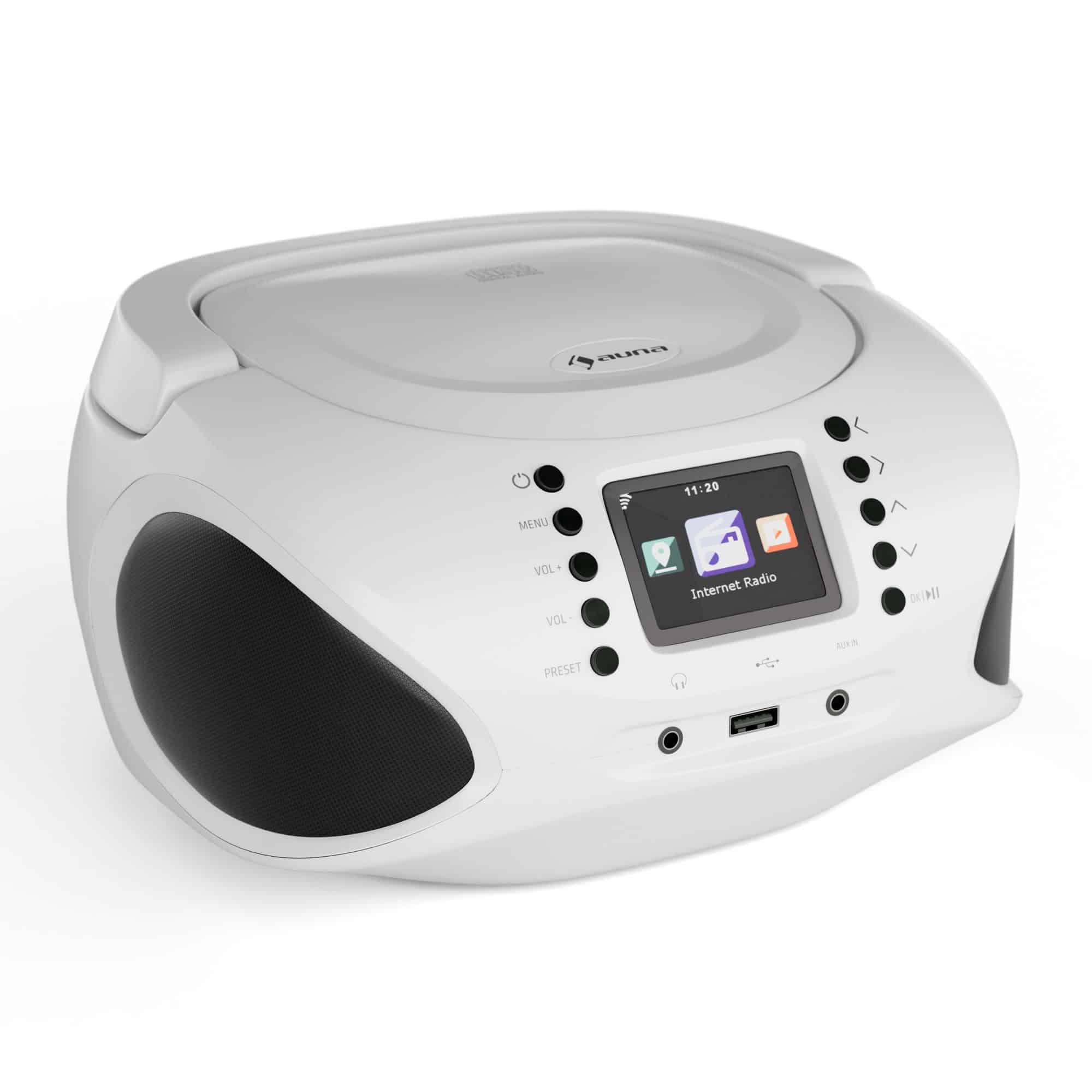 Auna Roadie Smart, IR/DAB/BT/CD/MP3, Boombox, USB, DAB+/internetové/FM rádio CD/MP3, prehrávač, 3W, Bluetooth, prenosný