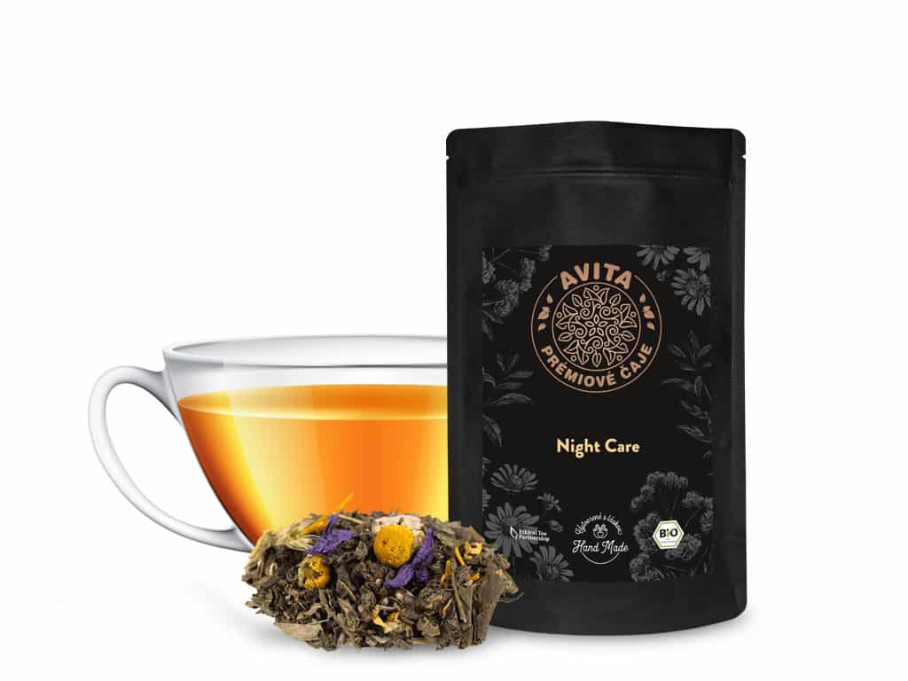 Organická čajová zmes Night Care kombinuje celé kúsky blahodarných bylín ako žihľava, upokojujúca medovka a harmanček, mäta a moringa. Výraznú bylinkovú chuť dopĺňajú podtóny zeleného čaju China Bancha a lahodného kokosu.