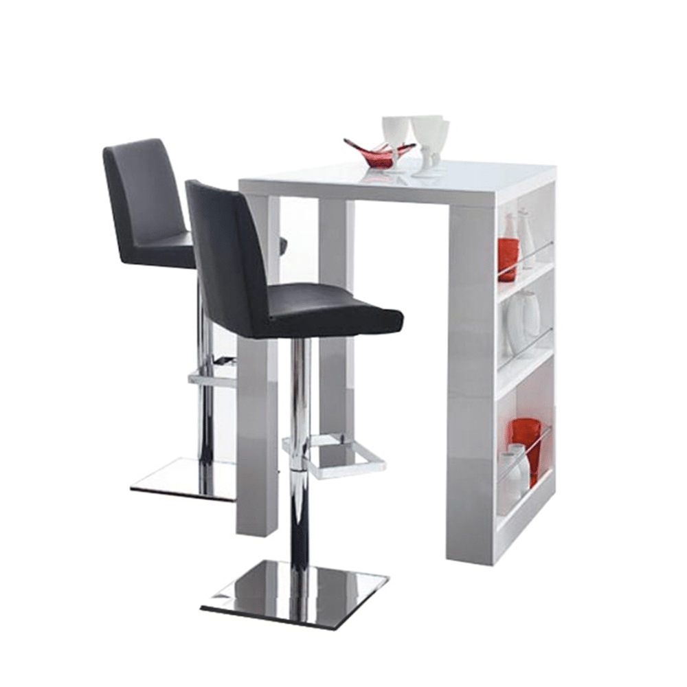 Barový pult, biela vysoký lesk, 80×80 cm, BILBAO