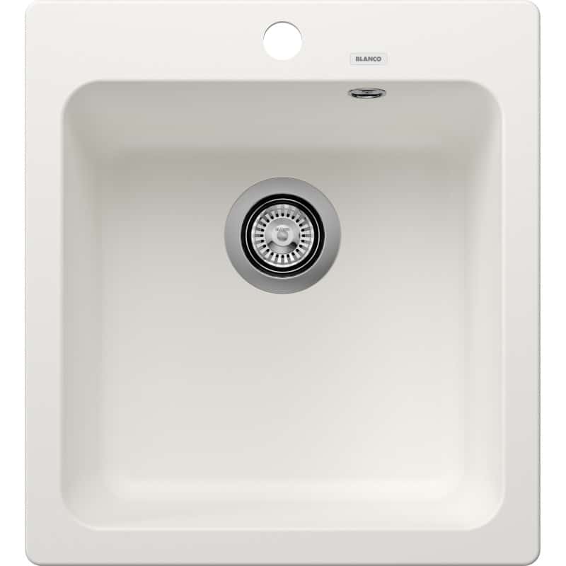 biela, Silgranitový jednodrez s nadčasovým dizajnom pre moderné kuchyne. I – klasické zabudovanie zhora na pracovnú dosku s konvenčným profilovaným okrajom. Šírka spodnej skrinky 45 cm, výrez: 445 x 490 mm, hĺbka vaničky: 200 mm