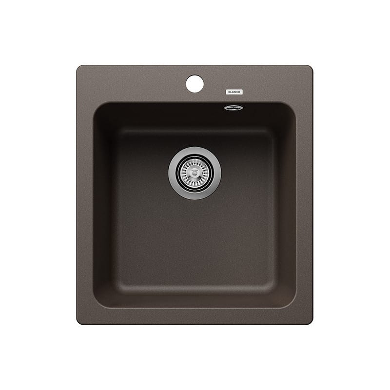 káva, Silgranitový jednodrez s nadčasovým dizajnom pre moderné kuchyne. I – klasické zabudovanie zhora na pracovnú dosku s konvenčným profilovaným okrajom. Šírka spodnej skrinky 45 cm, výrez: 445 x 490 mm, hĺbka vaničky: 200 mm