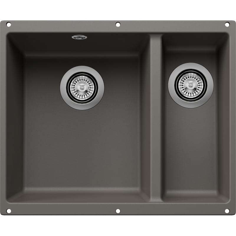 sivý vulkán, Dizajnová línia silgranitových drezov ROTAN pre zabudovanie pod pracovnú dosku. Jednodrez s prídavnou vaničkou, šírka spodnej skrinky 60 cm, výrez 525x 400mm, hĺbka vaničky 190/130mm.