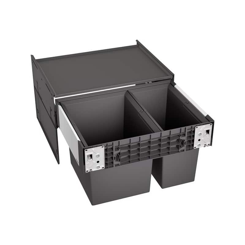 Košový a organizačný systém novej generácie BLANCO SELECT II 60/2. Rozmer skrinky 60 cm, objem koša 49 l. V dodávke 1 x 30 l a 1x 19 l nádoba, kryt.