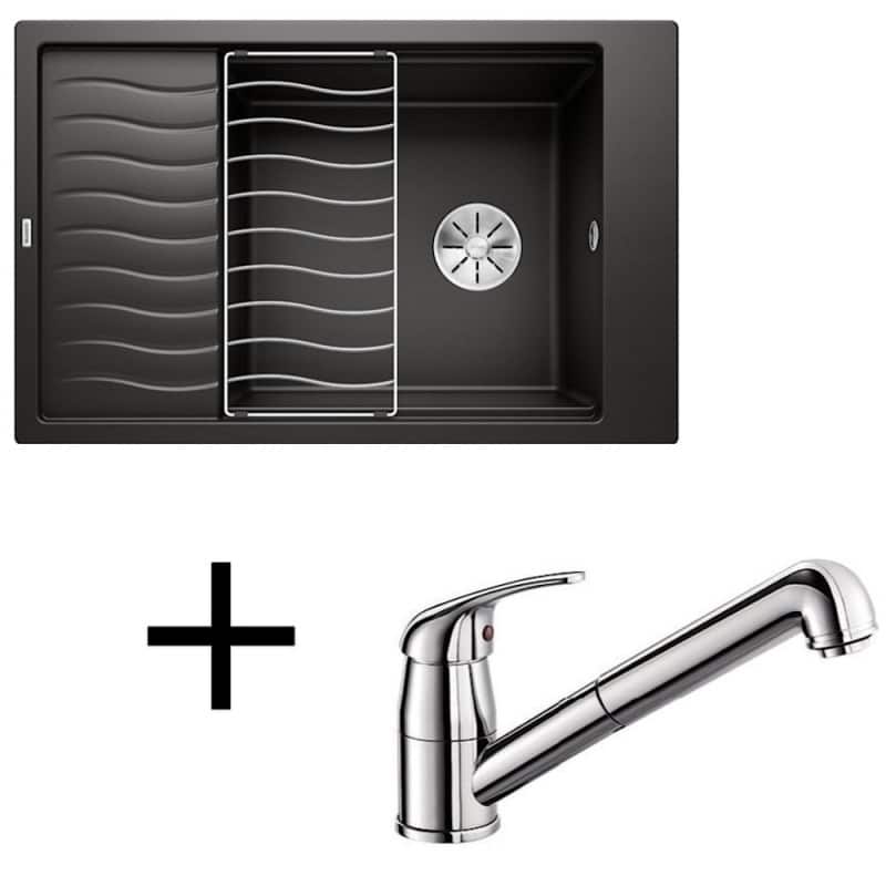 sivá skala, Set drezu Blanco Elon XL 6 S v silgranitovom prevedení a batérie Blanco Daras-S chrom
