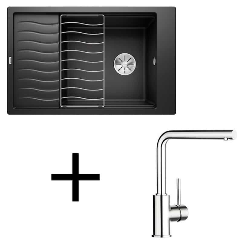 sivá skala, Set drezu Blanco Elon XL 6 S v silgranitovom prevedení a batérie Blanco Mila chróm