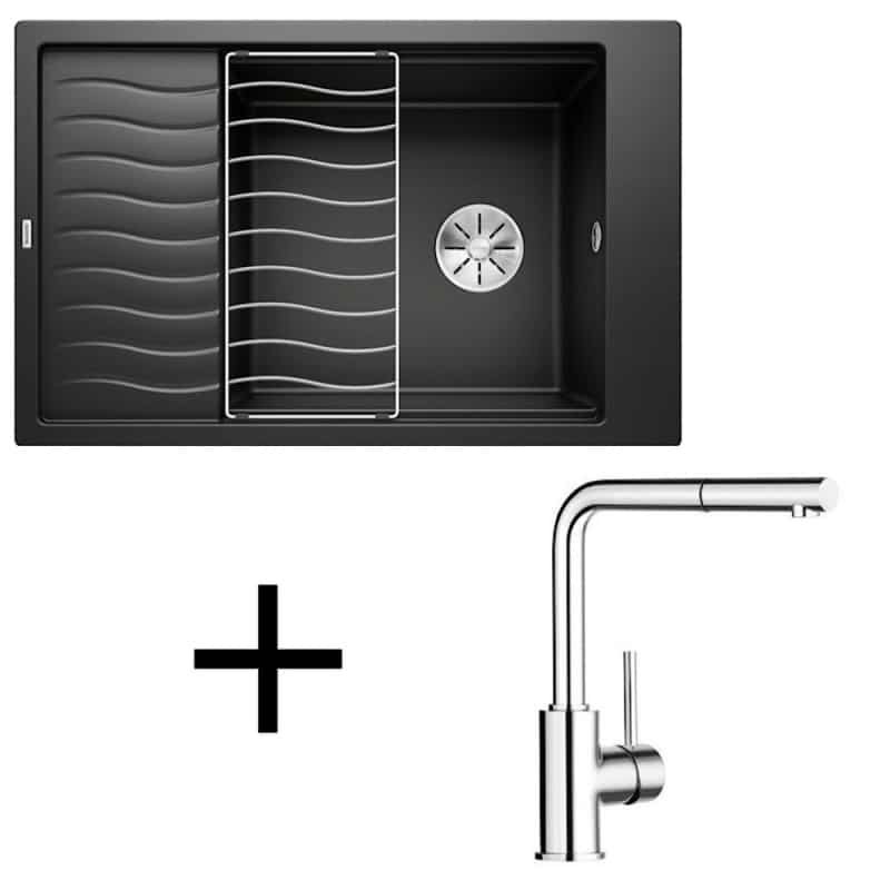 Set drezu Blanco Elon XL 6 S v silgranitovom prevedení a batérie Blanco Mila-S chróm