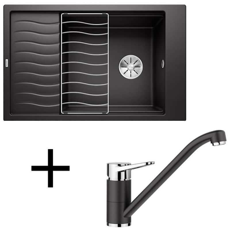 čierna, Set drezu Blanco Elon XL 6 S v silgranitovom prevedení a batérie Blanco Wega II silgranit/chróm