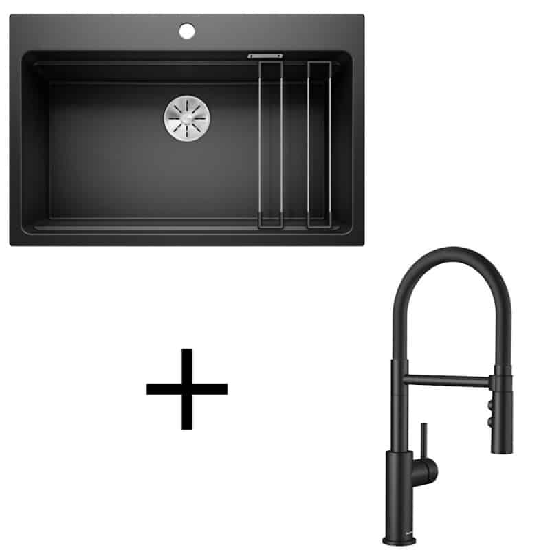 biela, Set drezu Blanco Etagon 8 v silgranitovom prevedení a batérie Blanco CATRIS-S Flexo čierna matná