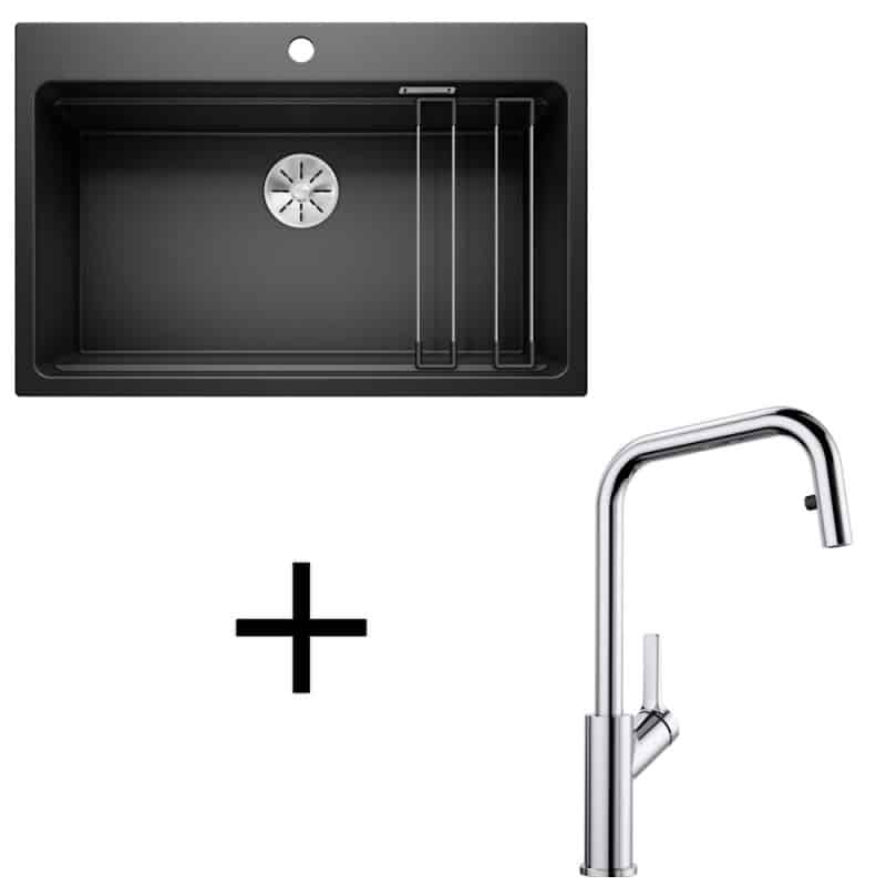 čierna, Set drezu Blanco Etagon 8 v silgranitovom prevedení a batérie Blanco JURENA-S chróm