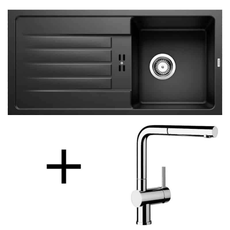 čierna, Set drezu Blanco Favum 45 S v silgranitovom prevedení a batérie Blanco Linus-S chróm