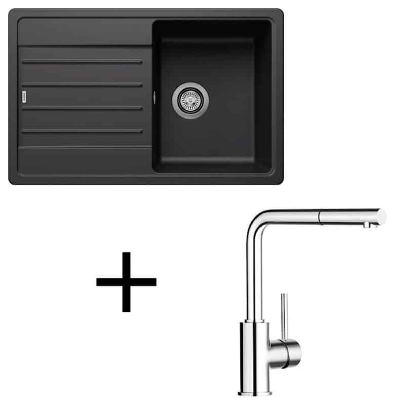 čierna, Set drezu Blanco Legra 45 S v silgranitovom prevedení a batérie Blanco Mila-S chróm