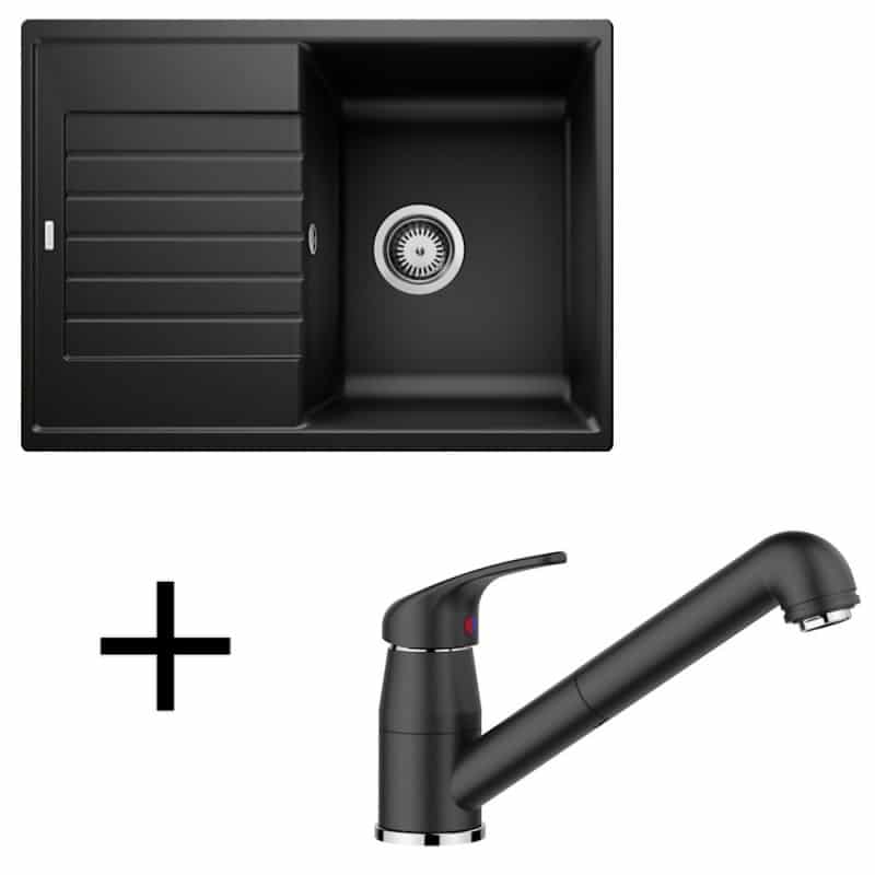 čierna, Set drezu Blanco Zia 45 S Compact v silgranitovom prevedení a batérie Blanco Daras-S silgranit
