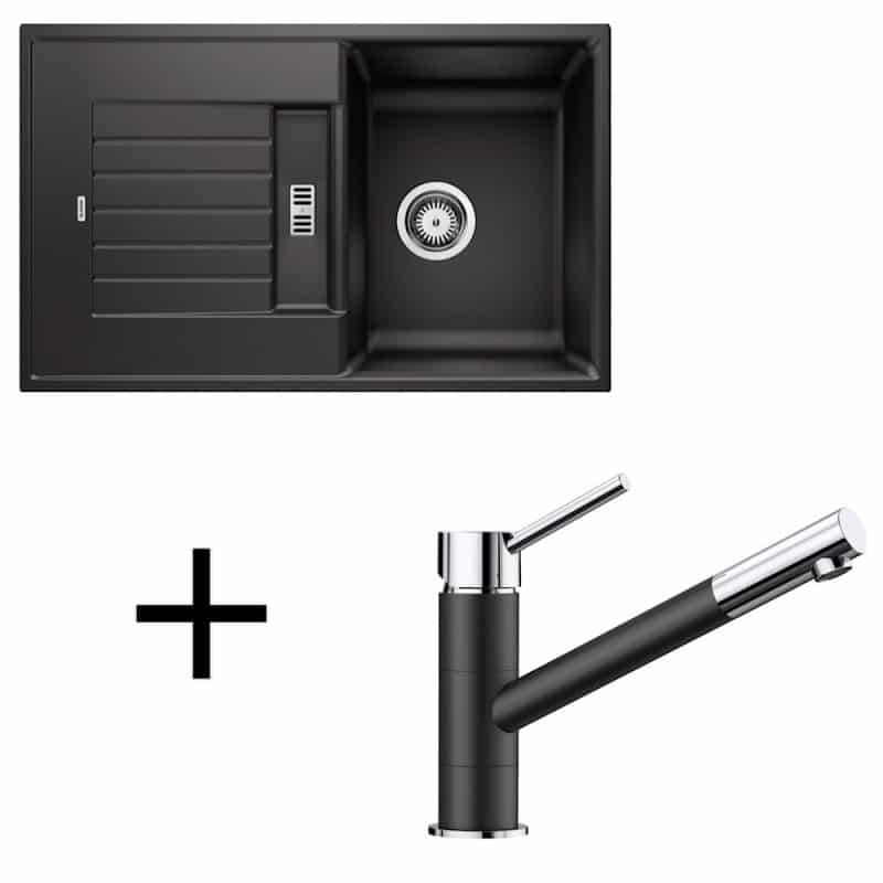 čierna, Set drezu Blanco Zia 45 S v silgranitovom prevedení a batérie Blanco Kano silgranit