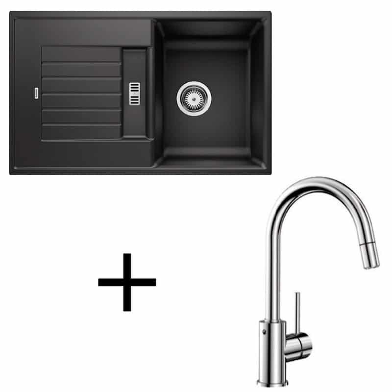 čierna, Set drezu Blanco Zia 45 S v silgranitovom prevedení a batérie Blanco Mida-S chrom