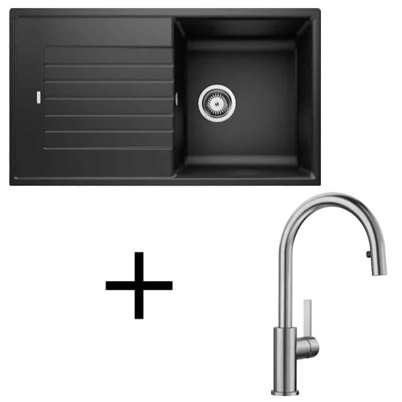 čierna, Set drezu Blanco Zia 5 S v silgranitovom prevedení a batérie Blanco Candor-S leštený nerez