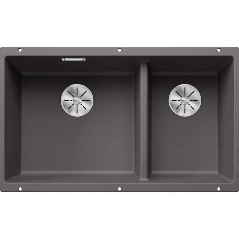 sivý vulkán, Dizajnová línia SUBLINE pre drezy pod pracovnú dosku v SILGRANIT®-ovom prevedení – s integrovanou funkčnou rovinou. 2 vaničky pre komfort a funkciu na dvoch úrovniach, odkladanie a odkvapkávanie. InFino výpusť. Šírka spodnej skrinky 80 cm, výrez 725 x 400 mm, hĺbka vaničky 200/200 mm.