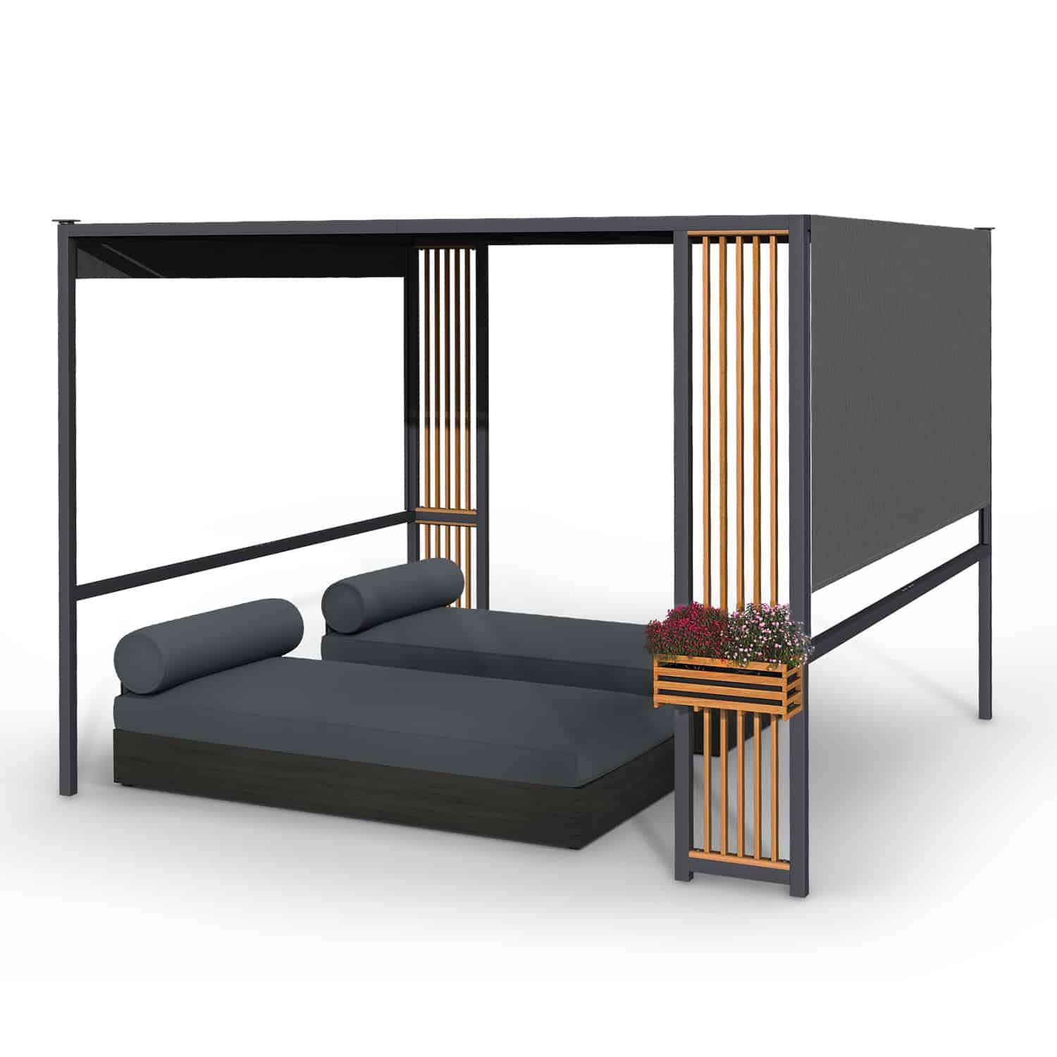 Idylické, chránené miesto aj počas príjemných letných večerov: AltánokValence od blumfeldt vás pozýva na oddych vonku, zatiaľ čo solárne osvetlenie LED poskytuje útulnú atmosféru.Pod strechou elegantného altánku Valence od blumfeldt si môžete s rodinou alebo priateľmi užívať akékoľvek počasie – vysokokvalitný materiál s povrchovou úpravou vám ponúka ochranu pred UV žiarením a dažďom. Či už na terase alebo v záhrade, užívajte si príjemné miesto v tieni, ktoré je zároveň úžasnou pastvou pre oči. Ušľachtilé drevené vzpery tvoria bočné steny a sú ideálne na upevnenie nádherne zasadených kvetináčov. Exkluzívny záhradný pavilón Valence od blumfeldt sa tak stane letnou oázou, ktorú večer dobre osvetľuje LED osvetlenie, ktoré vytvára príjemnú atmosféru. 5 wattové osvetlenie je napájané výlučne zo slnečného svetla prostredníctvom externého solárneho panelu s dobíjateľnou batériou. Rám odolný voči poveternostným vplyvom vám poskytne dlhodobú radosť zo záhradnej oázy a zároveň zabezpečí stabilitu. Záhradná oáza na trávenie dlhých hodín na slnku a príjemné večery: S osvetleným altánkom Valence od blumfeldt si môžete užívať pobyt vonku na príjemnej ploche 9 m²!
