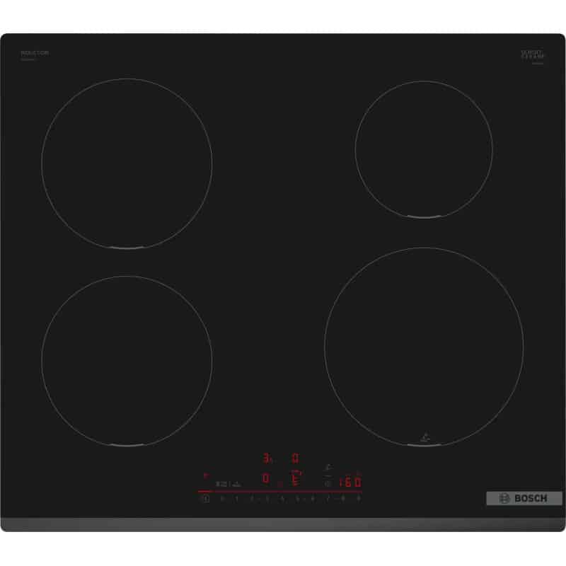 indukčná varná doska, 60 cm, 4 indukčné varné zóny, ovládanie DirectSelect+, PowerBoost, PerfectFry Plus, Smart Hood Automatic, HoodControl, funkcia Assist, PowerBoost, detská poistka, 2-stupňový ukazovateľ zostatkového tepla pre každú varnú zónu, príkon: 7,4 kW, predná fazeta