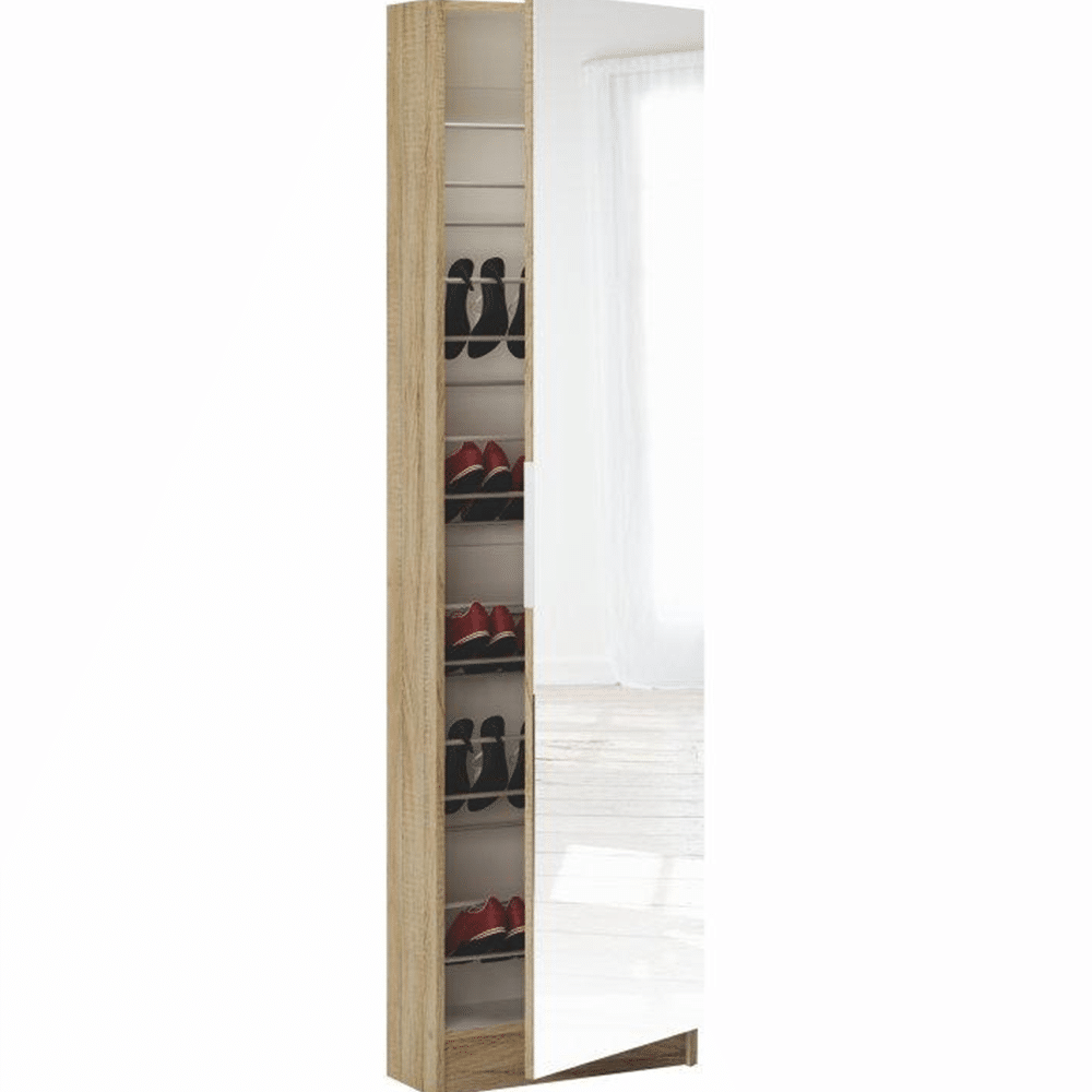 Šesťradový botník so zrkadlom KAPATER, DTD fóliovaná, prevedenie: dub sonoma