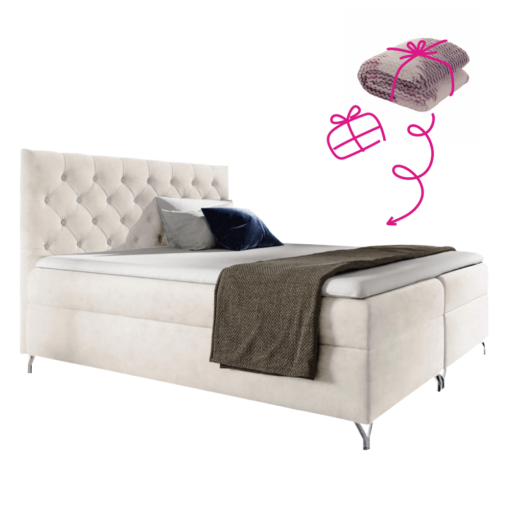 Boxspringová posteľ, 180×200, biela látka Velvet, GULIETTE + darček