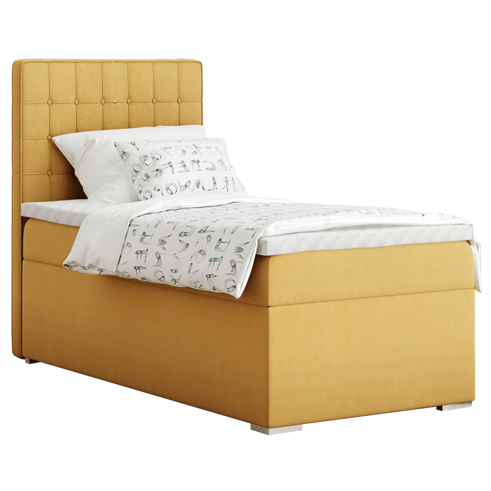 Boxspringová posteľ, jednolôžko, horčicová, 90×200, ľavá, TERY