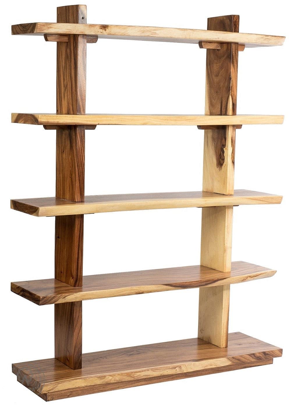 Policový regál vyrobený z tropického dreva suar. Môže byť vo vašom interiéri použitý ako polica do kúpeľní, knižnica alebo ako nábytok na výstavu umeleckých predmetov. Svojou originalitou jednoducho doplní moderný štýl Vášho interiéru. Ošetrené lakom.