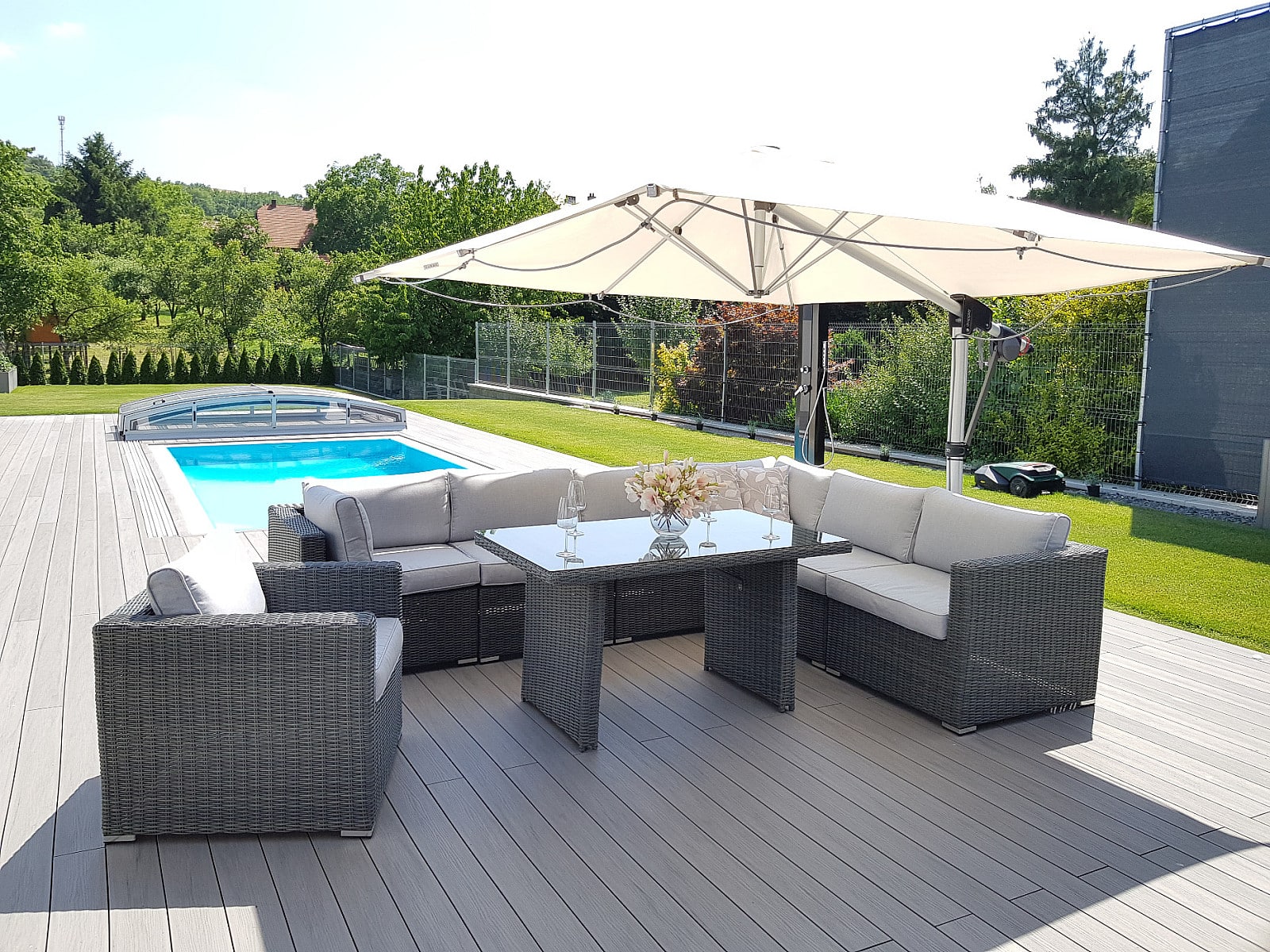 Ratanový nábytok z kolekcie modulových setov, ktorý vyniká svojou variabilitou.Zostavte si súpravy podľa Vašich predstáv.Umelý ratan sa pýši svojím nadčasovým dizajnom a takmer nulovú údržbou. Polyetylénové vlákno sa vyznačuje vysokou pružnosťou, pevnosťou a odolnosťou voči vlhkosti i UV žiareniu. Je odolný voči povětrmostním podmienkam a je vhodný na celoročné státie vonku (odporúčame pod zastrešením alebo ochranným obalom v zimných mesiacoch). Umelý ratan je ľahký, takže zaisťuje pohodlnú manimulaci záhradného nábytku po záhrade či terase.Konštrukcia je vyrobená z robustnej hliníkovej konštrukcie, ktorá je zvarená tak, aby zaistila vysokú nosnosť jednotlivých prvkov. Hliník sa vyznačuje vysokou odolnosťou a pevnosťou. Nedochádza ku korózii.Polstrovanie je v sile 10 cm, jedná sa o látku s hustotou 220 g/m2. Lemovanie po krajoch. Penová výplň. Všetky podušky sú vybavené zipsom. Možnosť prania v práčke na 40 ° C bez aviváže.