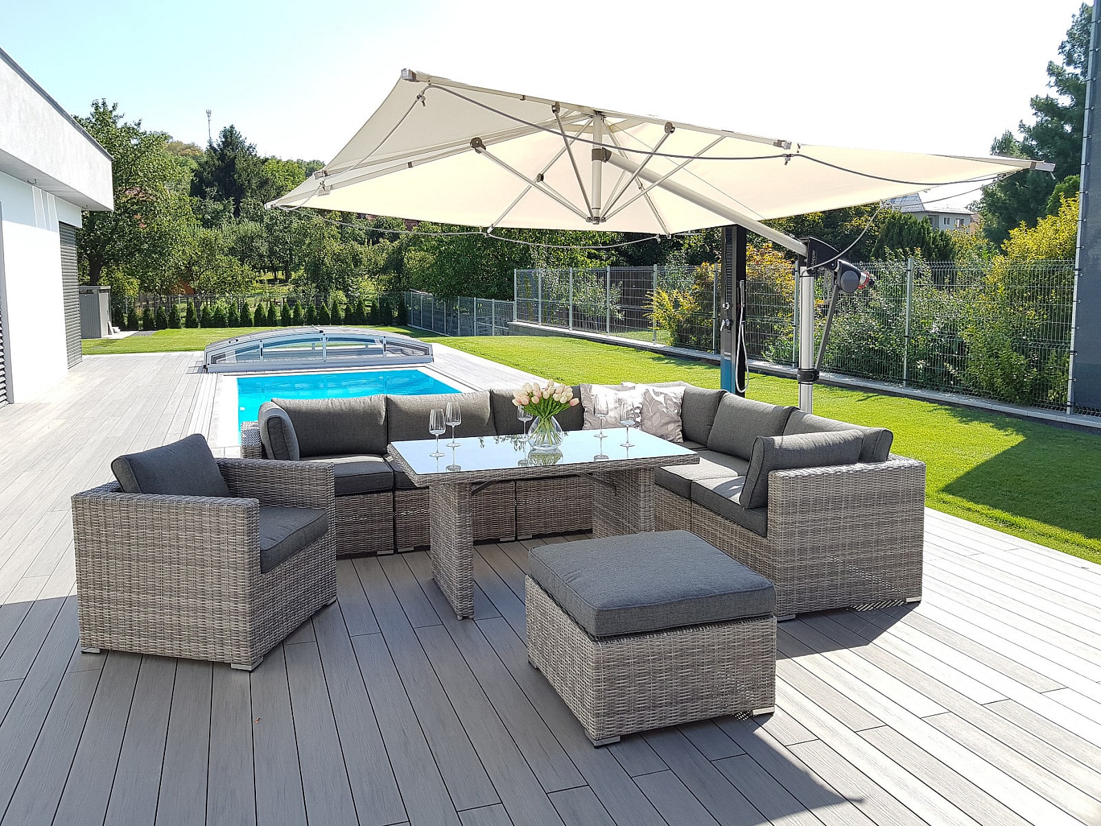 Ratanový nábytok z kolekcie modulových setov, ktorý vyniká svojou variabilitou.Zostavte si súpravy podľa Vašich predstáv.Umelý ratan sa pýši svojím nadčasovým dizajnom a takmer nulovú údržbou. Polyetylénové vlákno sa vyznačuje vysokou pružnosťou, pevnosťou a odolnosťou voči vlhkosti i UV žiareniu. Je odolný voči povětrmostním podmienkam a je vhodný na celoročné státie vonku (odporúčame pod zastrešením alebo ochranným obalom v zimných mesiacoch). Umelý ratan je ľahký, takže zaisťuje pohodlnú manimulaci záhradného nábytku po záhrade či terase.Konštrukcia je vyrobená z robustnej hliníkovej konštrukcie, ktorá je zvarená tak, aby zaistila vysokú nosnosť jednotlivých prvkov. Hliník sa vyznačuje vysokou odolnosťou a pevnosťou. Nedochádza ku korózii.Polstrovanie je v sile 10 cm, jedná sa o látku s hustotou 220 g/m2. Lemovanie po krajoch. Penová výplň. Všetky podušky sú vybavené zipsom. Možnosť prania v práčke na 40 ° C bez aviváže.