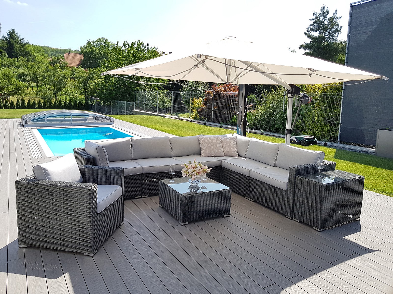 Ratanový nábytok z kolekcie modulových setov, ktorý vyniká svojou variabilitou.Zostavte si súpravy podľa Vašich predstáv.Umelý ratan sa pýši svojím nadčasovým dizajnom a takmer nulovú údržbou. Polyetylénové vlákno sa vyznačuje vysokou pružnosťou, pevnosťou a odolnosťou voči vlhkosti i UV žiareniu. Je odolný voči povětrmostním podmienkam a je vhodný na celoročné státie vonku (odporúčame pod zastrešením alebo ochranným obalom v zimných mesiacoch). Umelý ratan je ľahký, takže zaisťuje pohodlnú manimulaci záhradného nábytku po záhrade či terase.Konštrukcia je vyrobená z robustnej hliníkovej konštrukcie, ktorá je zvarená tak, aby zaistila vysokú nosnosť jednotlivých prvkov. Hliník sa vyznačuje vysokou odolnosťou a pevnosťou. Nedochádza ku korózii.Polstrovanie je v sile 10 cm, jedná sa o látku s hustotou 220 g/m2. Lemovanie po krajoch. Penová výplň. Všetky podušky sú vybavené zipsom. Možnosť prania v práčke na 40 ° C bez aviváže.