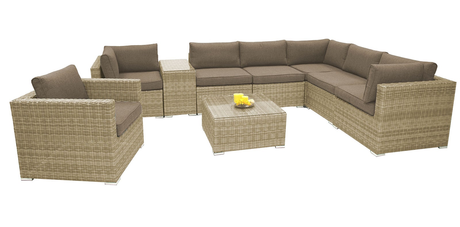Ratanový nábytok z kolekcie modulových setov, ktorý vyniká svojou variabilitou.Zostavte si súpravy podľa Vašich predstáv.Umelý ratan sa pýši svojím nadčasovým dizajnom a takmer nulovú údržbou. Polyetylénové vlákno sa vyznačuje vysokou pružnosťou, pevnosťou a odolnosťou voči vlhkosti i UV žiareniu. Je odolný voči povětrmostním podmienkam a je vhodný na celoročné státie vonku (odporúčame pod zastrešením alebo ochranným obalom v zimných mesiacoch). Umelý ratan je ľahký, takže zaisťuje pohodlnú manimulaci záhradného nábytku po záhrade či terase.Konštrukcia je vyrobená z robustnej hliníkovej konštrukcie, ktorá je zvarená tak, aby zaistila vysokú nosnosť jednotlivých prvkov. Hliník sa vyznačuje vysokou odolnosťou a pevnosťou. Nedochádza ku korózii.Polstrovanie je v sile 10 cm, jedná sa o látku s hustotou 220 g/m2. Lemovanie po krajoch. Penová výplň. Všetky podušky sú vybavené zipsom. Možnosť prania v práčke na 40 ° C bez aviváže.