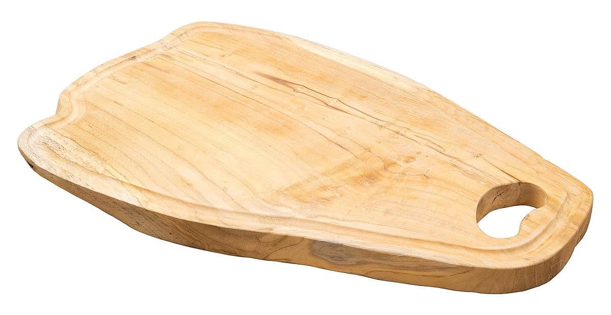 Doštička vyrobená z teakového dreva. Vhodné ako na servírovanie, tak aj rezanie. Na krajoch vyfrézovaná drážka na zachytenie štiav z mäsa či ovocia. Pitoreskná dekorácia do vašej kuchyne.