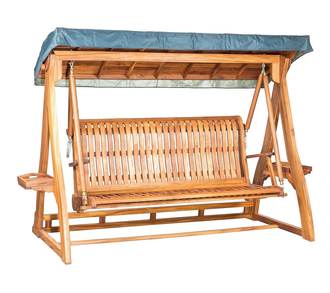 Na prianie našich zákazníkov prichádzame s novým modelom záhradnej hojdačky, ktorá má polohovateľnú zadnú opornú časť. Záhradná hojdačka BRENDA je vyrobená z prvotriedneho jadrového indonézskeho teaku. Má výrazný a pôsobivý vzhľad vďaka detailnému spracovaniu jednotlivých častí. Chrbát lavice je anatomicky tvarovaný. Strechu je možné jednoducho natáčať podľa potreby zatienenia. Ku komfortu prispievajú snímateľné podnosy. Je možné objednať aj špeciálne šité polstrovanie, ktoré Vám zaručí pohodlné sedenie, alebo ležanie. Súčasťou je aj veľmi praktická plachta cez strechu v zelenej farbe. Drevená hojdačka je ošetrená teakovým olejom.